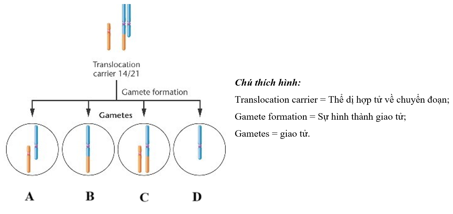 | a) Dung hợp giao tử B với giao tử bình thường cho ra người mang chuyển đoạn có kiểu hình bình thường nhưng có 45 nhiễm sắc thể. | ||