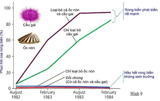 2. Khi chỉ có ốc nón và rong biển, quần thể rong biển phục hồi ở mức độ khá cao.