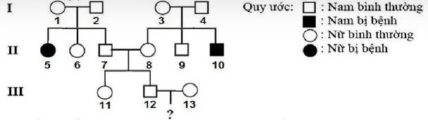 Sơ đồ phả hệ sau đây mô tả sự di truyền của bệnh M ở người do một gen với 2 allele trội lặn hoàn toàn quy định.