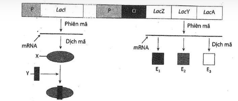 | a) Đây là hình biểu diễn hoạt động của operon Lac ở vi khuẩn E.coli. | ||