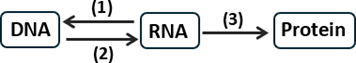 Ở một số virus có vật chất di truyền là RNA (HIV, SARS-CoV-2,…) có quá trình phiên mã ngược. Sau khi vào tế bào, RNA được enzyme phiên mã ngược của virus chuyển thành DNA và tích hợp vào DNA của tế bào chủ. Hình sau khái quát quá trình truyền đạt thông tin di truyền ở cấp độ phân tử của một số virus có vật chất di truyền là RNA.