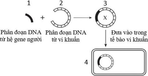 Sơ đồ hình sau mô tả kỹ thuật chuyển gene từ tế bào người vào vi khuẩn. Theo sơ đồ này,