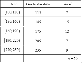Xét mẫu số liệu ghép nhóm cho ở Bảng 1. Gọi $\overline{x}$ là số trung bình cộng của mẫu số liệu ghép nhóm.