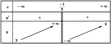 Cho hàm số $f(x)$ liên tục trên mỗi khoảng $\left( {- \infty; - \dfrac{1}{2}} \right)$ và $\left( {- \dfrac{1}{2}; + \infty} \right)$ và có bảng biến thiên như hình vẽ bên dưới