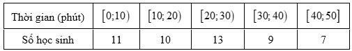 Khảo sát thời gian tập thể dục trong ngày của một số học sinh lớp 12 thu được mẫu số