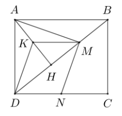 Cho hình chữ nhật $ABCD$, kẻ $AH\bot BD$ tại $H$. Gọi $M,\,\, N$ tương ứng là trung điểm của