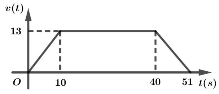 Tốc độ di chuyển $v(t)\left( {\text{m}/\text{s}} \right)$ của một ca nô trong khoảng thời gian 51 giây được xác định như hình vẽ.