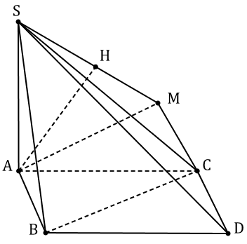 Dựng $CD \parallel AB,CD = AB$. Khi đó $d\left( {AB,SC} \right) = d\left( {A,\left( {SCD} \right)} \right) = AH$ với $AM\bot CD,AH\bot SM$