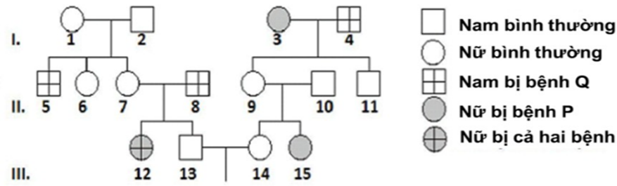 Sơ đồ phả hệ dưới đây mô tả hai bệnh di truyền ở người, trong đó có một trong hai bệnh