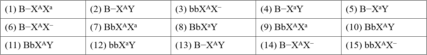 Biết rằng không xảy ra đột biến mới ở tất cả các cá thể trong phả hệ. Có thể xác định được kiểu gene của bao nhiêu người trong phả hệ về cả 2 tính trạng được xét?