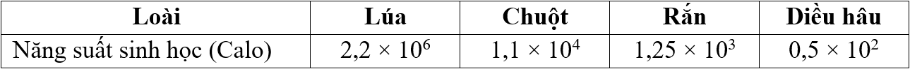 Cho các thông tin ở bảng dưới đây: Hiệu suất sinh thái giữa sinh vật tiêu thụ bậc 3 với sinh