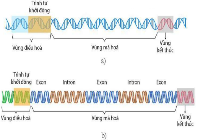 Dưới đây là sơ đồ khái quát cấu trúc một gene ở sinh vật nhân sơ (a) và sinh vật nhân