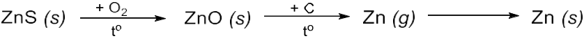 Trong công nghiệp, kim loại kẽm được tách từ quặng sphalerite (thành phần chính là ZnS) theo sơ đồ sau: