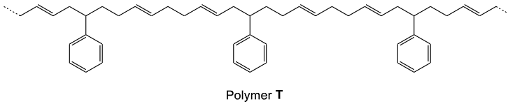 Thực hiện phản ứng trùng hợp hỗn hợp hai hydrocarbon X và Y (có mặt xúc tác, đun nóng) thu được polymer T. Một đoạn mạch polymer T có công thức cấu tạo như sau: