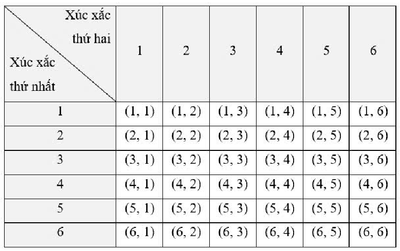 Gieo đồng thời hai con xúc xắc cân đối đồng chất. Tính xác suất của biến cố: "Tổng số chấm xuất hiện trên hai con xúc xắc lớn hơn hoặc bằng 10".