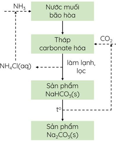 Cho sơ đồ Solvay sản xuất sodium hydrogencarbonate và sodium carbonate như sau: