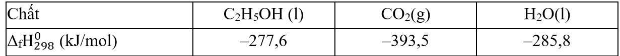 Q = $\text{n}_{\text{C}_{2}\text{H}_{5}\text{OH}}$.|$\Delta_{\text{r}}\text{H}_{298}^{o}$|; H = 40% nên Qích = 40%.Q
