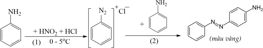 Một công ty hóa chất X liên kết với công ty may mặc Y, sản xuất ra hợp chất azo màu vàng với một lượng lớn để công ty Y nhuộm cho 30 000 chiếc thảm trải sàn và 10 000 chiếc túi đựng. Nguyên liệu chính mà công ty hóa chất X sử dụng là aniline và toàn bộ quá trình sản xuất được thực hiện theo sơ đồ chuyển hóa sau: