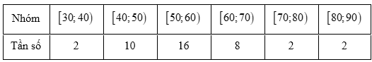 Cho bảng tần số ghép nhóm số liệu thống kê cân nặng của 40 học sinh lớp 11 A trong một