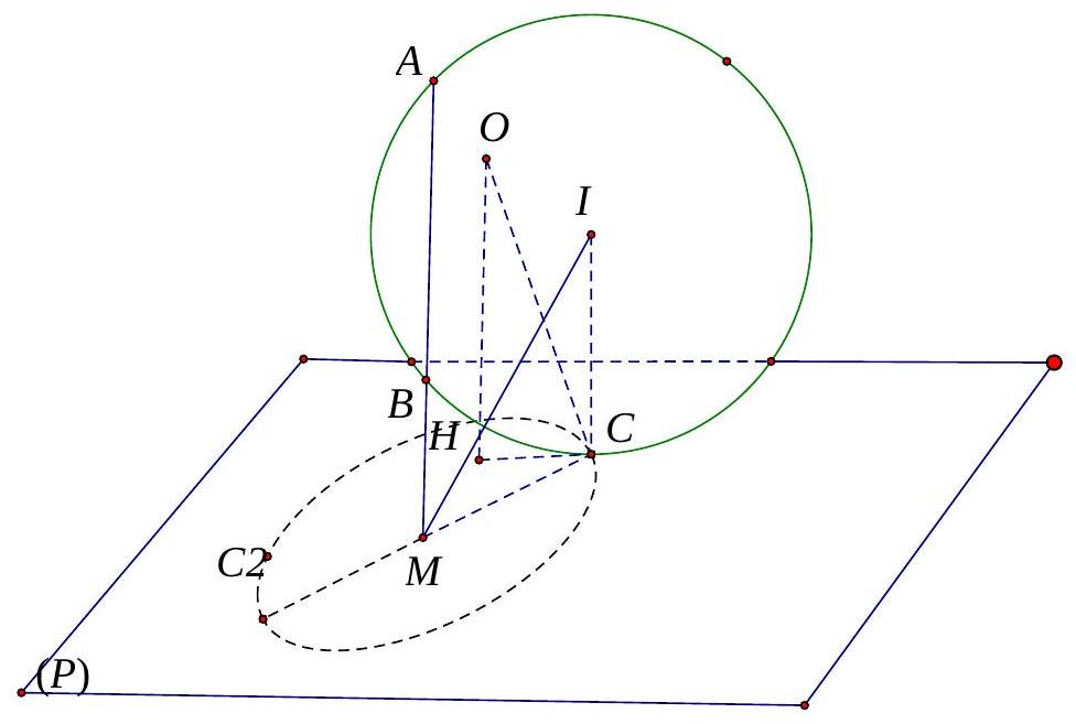 Gọi M là giao điểm của AB và (P). Chứng minh $MC^{2} = MA.MB$ cố định từ đó suy ra quỹ tích của C là đường tròn tâm M.