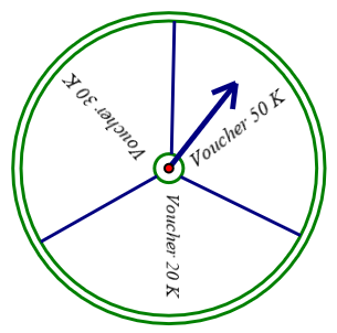 Một siêu thị mới khai trương, tổ chức trò chơi thu hút khách hàng bằng hình thức cho khách hàng mua hàng giá trị từ 500000 đồng trở lên được quay vòng quay may mắn như hình dưới.