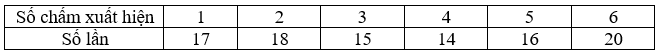 Gieo một con xúc xắc có 6 mặt 100 lần, kết quả thu được ghi ở bảng sau: