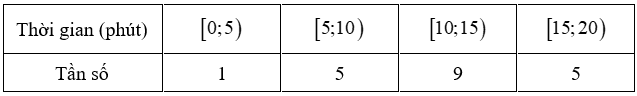 Sau khi điều tra về thời gian của một nhóm học sinh làm bài kiểm tra trắc nghiệm, kết quả được ghi lại trong bảng sau: