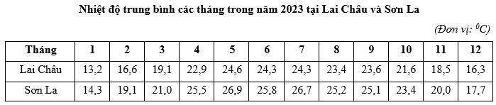 Căn cứ vào bảng số liệu trên, hãy cho biết số tháng lạnh của Lai Châu nhiều hơn số tháng lạnh của Sơn La là mấy tháng (làm tròn kết quả đến hàng đơn vị).