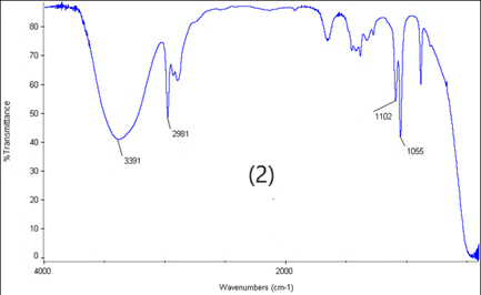 | c) Trong 2 phổ đã cho thì phổ (1) là phổ của ethanol và phổ (2) là phổ của acetaldehyde. | ||