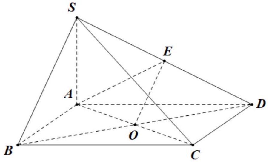 $\widehat{\left( {SB,AC} \right)} = \widehat{\left( {OE,AC} \right)}$ với $E$ là trung điểm của $SD$