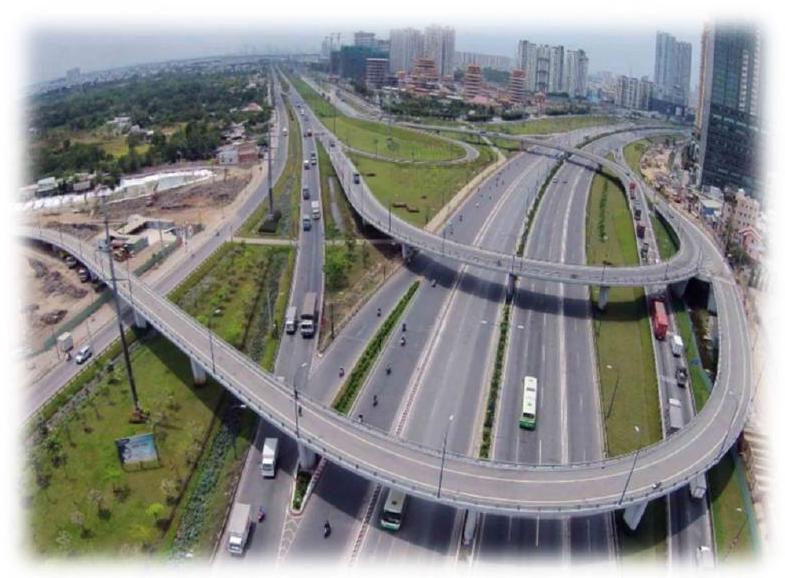Tại một nút giao thông có hai con đường khác mức. Trên thiết kế, trong không gian $Oxyz$ hai con đường đó thuộc hai đường thẳng $d_{1}:\dfrac{x - 2}{1} = \dfrac{y - 2}{1} = \dfrac{z}{- 1};d_{2}:\dfrac{x - 2}{1} = \dfrac{y + 1}{2} = \dfrac{z}{- 3}$.