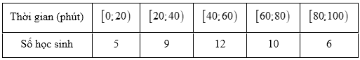 Khảo sát thời gian tập thể dục của một số học sinh khối 11 thu được mẫu số liệu ghép