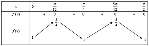 | d) Giá trị lớn nhất của $f(x)$ trên đoạn $\left\lbrack {0;\dfrac{\pi}{2}} \right\rbrack$ là $\dfrac{5}{4}$. |