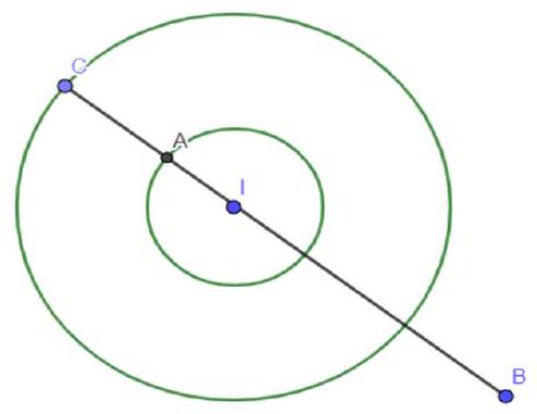 d) Tổng khoảng cách từ $B$ đến $A$ và $C$ có giá trị lớn nhất khi $\text{A},\text{C},\text{B},\text{I}$ thẳng hàng sao cho I nằm giữa A và $\text{B};\text{A}$ nằm giữa C và I.
