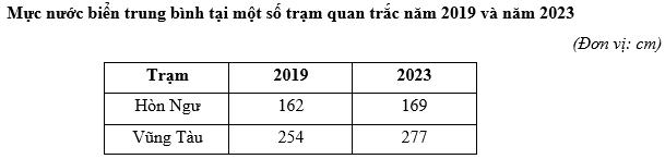 Căn cứ vào bảng số liệu trên, hãy cho biết trong giai đoạn trên mực nước biển tăng thêm của Vũng Tàu gấp bao nhiêu lần mực nước biển tăng thêm của Hòn Ngư (làm tròn kết quả đến một chữ số thập phân).