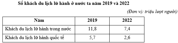 Căn cứ vào bảng số liệu trên, hãy cho biết trong giai đoạn trên tỉ trọng của khách du lịch lữ hành quốc tế trong tổng số khách du lịch lữ hành ở nước ta giảm bao nhiêu phần trăm (làm tròn kết quả đến hàng đơn vị).