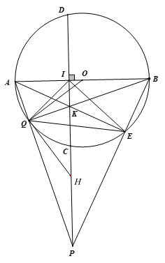 Gọi H là trung điểm của PK, khi đó đường tròn (H; HP) ngoại tiếp tam giác PQE.