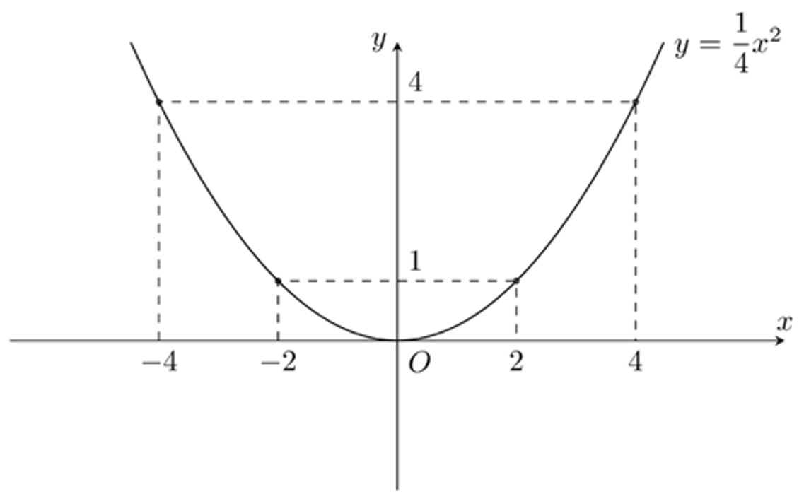 Cho hàm số $y = \dfrac{1}{4}x^{2}$ có đồ thị là Parabol (P).