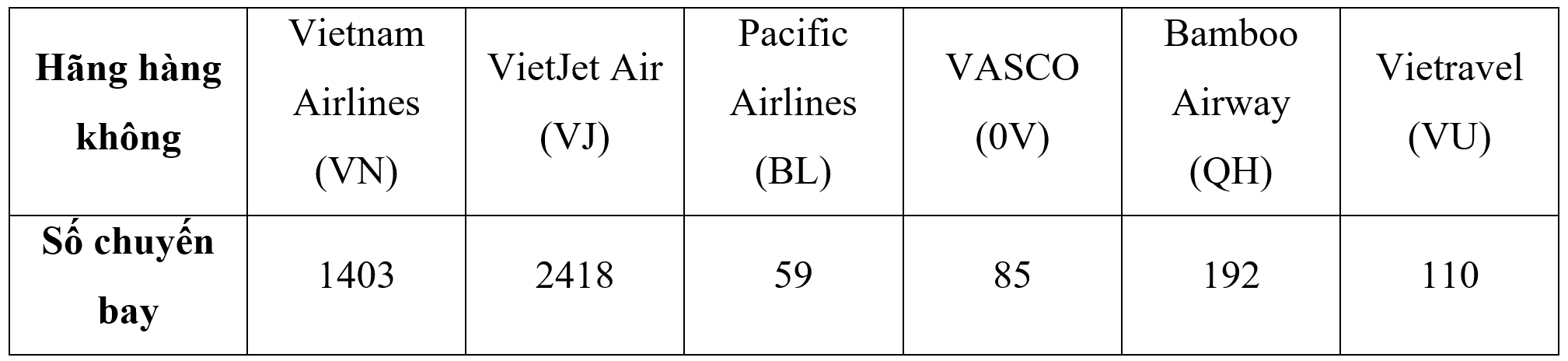 Từ đó tính tỉ số phần trăm giữa số chuyến bay của Vietnam Airlines so với tổng số chuyến bay.