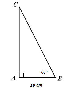 5.1) Cho tam giác ABC vuông tại A; AB = 10 cm, $\angle ABC = 60{^\circ}$. Tính độ dài cạnh BC (biết $\tan 60{^\circ} = \sqrt{3}$, $\sin 60{^\circ} = \dfrac{\sqrt{3}}{2}$, $\cos 60{^\circ} = \dfrac{1}{2}$)