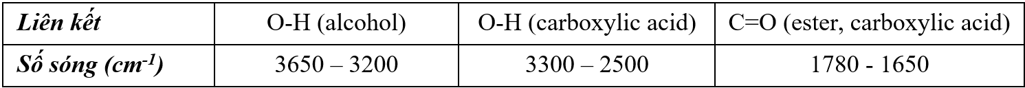 Biết số sóng hấp thụ đặc trưng của một số liên kết trên phổ IR như sau: