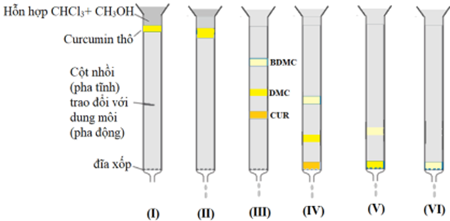 Dựa vào đoạn thông tin trên và sơ đồ tách của ba loại curcuminoid.