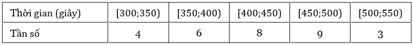 Một công ty tổ chức thi tuyển kĩ thuật viên mới. Thời gian hoàn thành một bài thực hành của các ứng cử viên được ghi lại trong bảng sau: (đơn vị: giây)