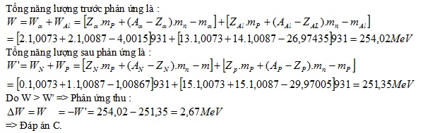 Ban cơ bản Cho phản ứng hạt nhân , khối lượng của các hạt nhân là mα = 4,0015u, mAl = 26,97435u,