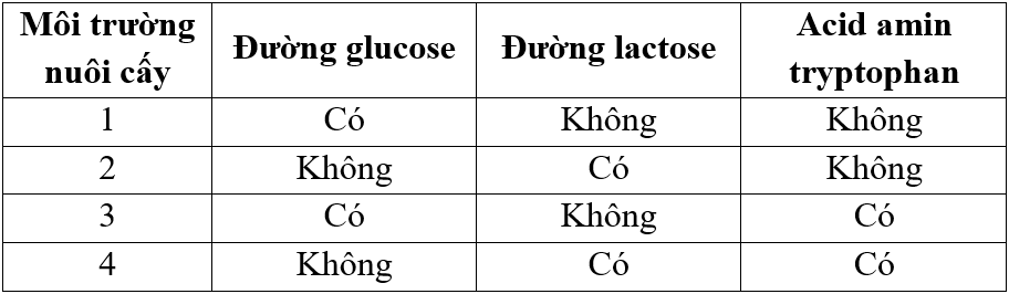 Giả sử sự sinh trưởng của tế bào vi khuẩn E.coli có liên hệ mật thiết với sự có mặt của acid amin tryptophan và chất cho carbon. Chuyển plasmid tái tổ hợp chứa “operon lai” vào dòng tế bào vi khuẩn E. Coli đột biến mất trình tự operon Trp và operon Lac.