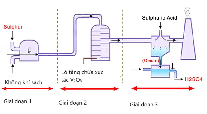Quá trình sản xuất sulfuric acid được biểu diễn như sơ đồ sau: