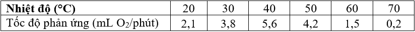 Khi nghiên cứu ảnh hưởng của nhiệt độ đến hoạt tính enzyme catalase, thu được bảng số liệu sau: