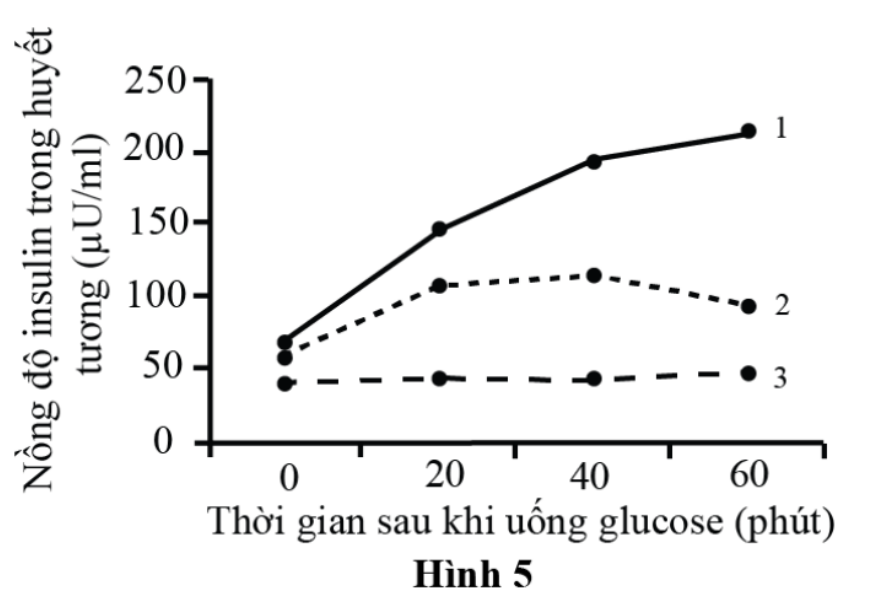 | d) Đường con 1, 2, 3 lần lượt là của người khỏe mạnh, bệnh nhân tiểu đường type 1 và bệnh nhân tiểu đường type 2. |