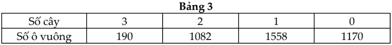 Một người nông dân tiến hành khảo sát quần thể cây sim đồi B trên tổng diện tích 4000m được chia đều 4000 ô vuông Kết quả thu được thể hiện ở Bảng 3.