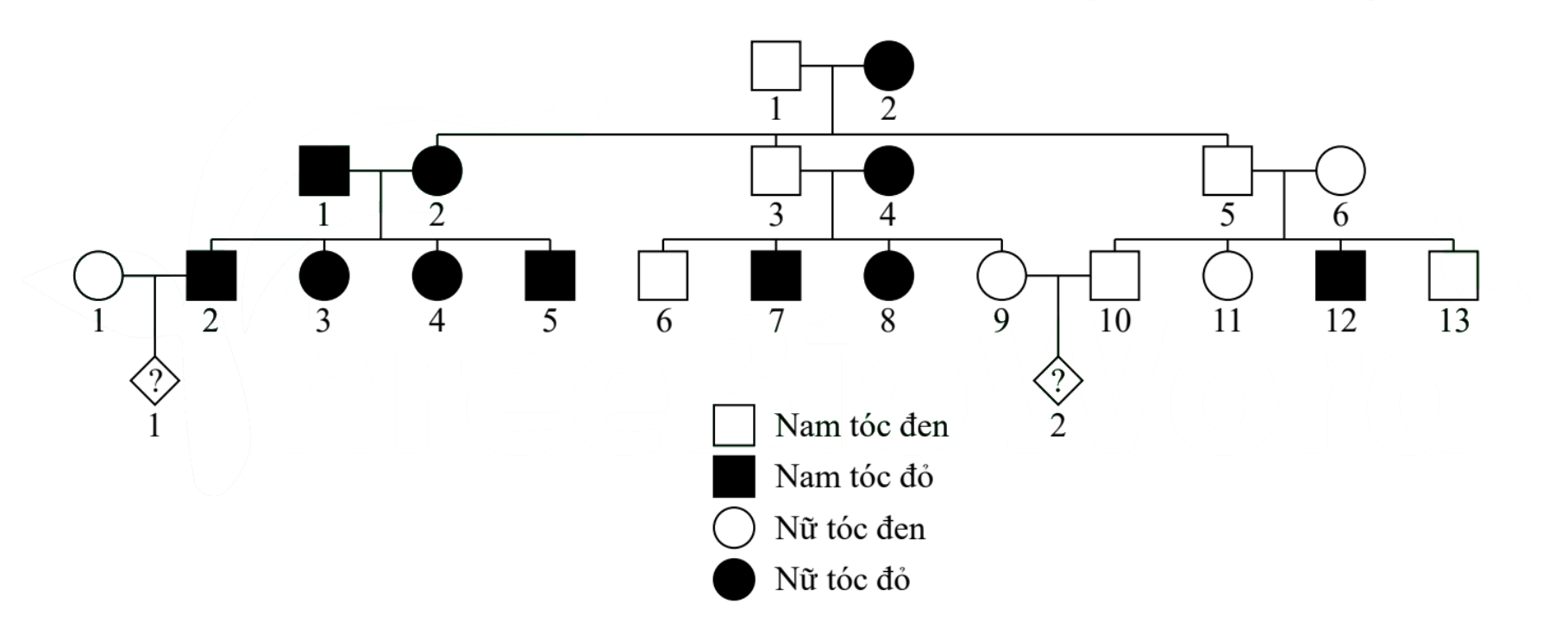 Sơ đồ phả hệ dưới đây mô tả tính trạng màu tóc ở người do 1 gene gồm 2 allele quy định.